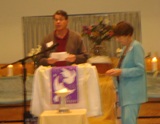 Rabbi Barry Silver welcomes guests. William Bode and Judith Kraft of the Unitarian Universality Fellowship of Boca Raton open prayer with the lighting of the chalice.